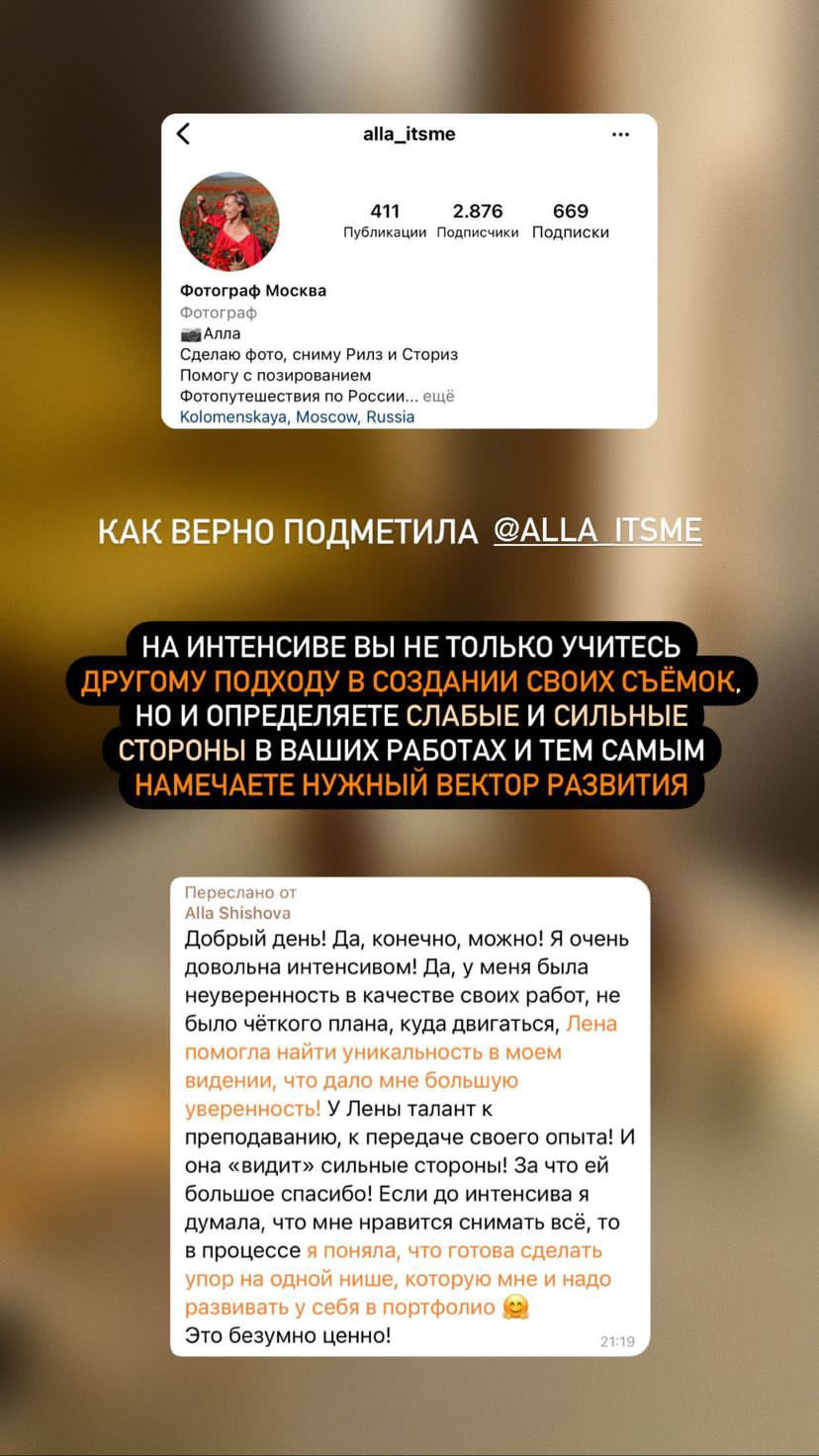 Мы подробно разберём, что делать дальше с отснятым материалом, как с его помощью привлекать клиентов и продавать новые съёмки. Как делать прогревы в сфере фотографии и как доносить до подписчиков ценность вашей работы.